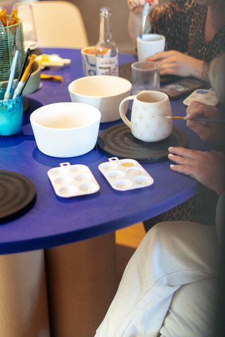Nach dem Event bringen wir alle bemalten Stücke zurück ins Atelier, glasieren und brennen sie liebevoll – und ein paar Wochen später haben deine Gäste ihreganz persönlichen Unikate in den Händen.